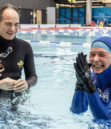 Water runs through her photos like a constant presence, revealed in the motion of athletes and models alike, until one wonders -